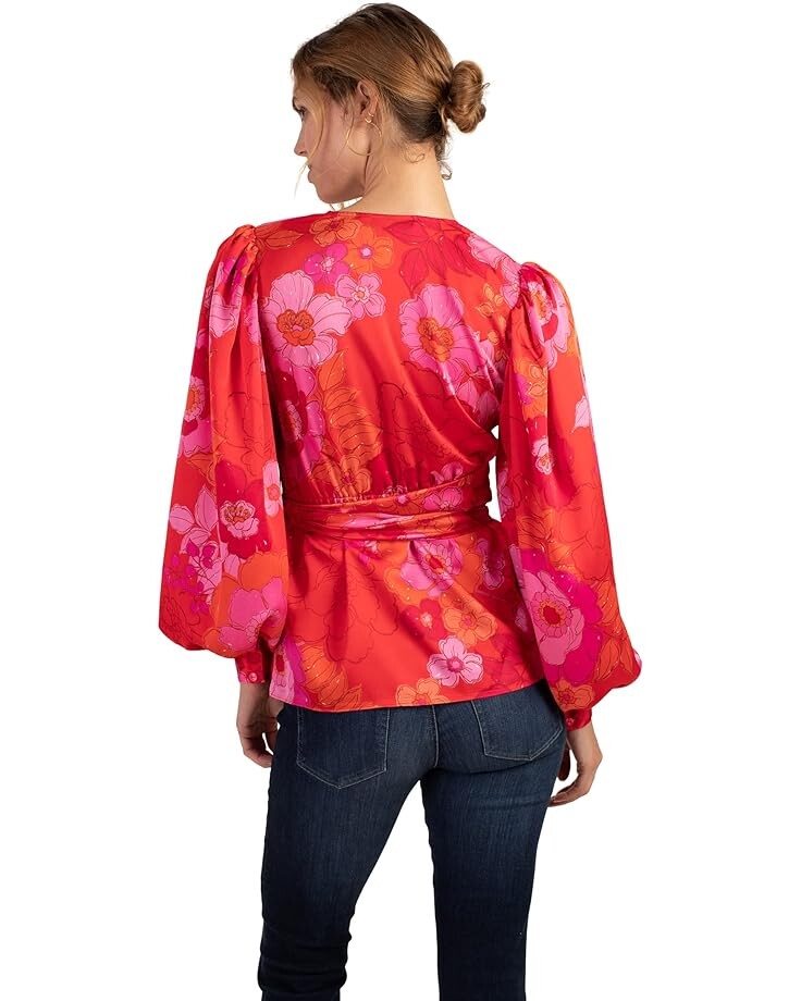 Оденьтесь на вечеринку в топ Trina Turk Aquatic Top с цветочным принтом и вырезом из воротника и наслаждайтесь легкостью силуэта с запахом.