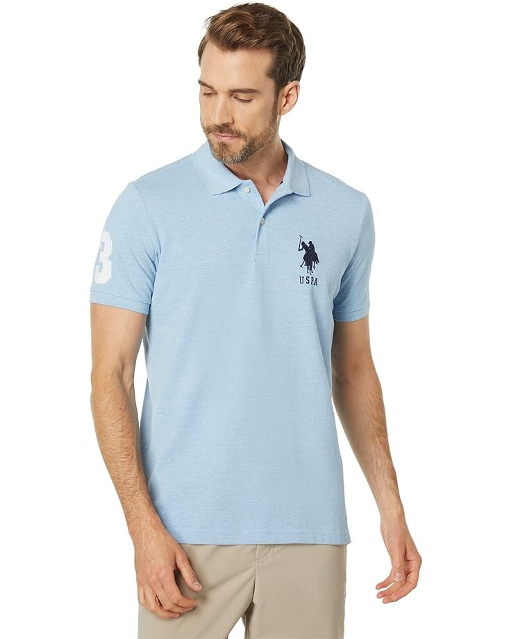 Поло U.S. POLO ASSN. Solid Pique Polo, цвет Surf Blue Heather