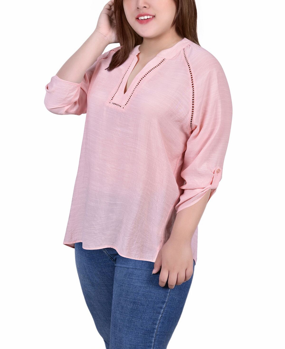 Плюс размер блузка с разрезом шеи и рукавами реглан NY Collection, мульти