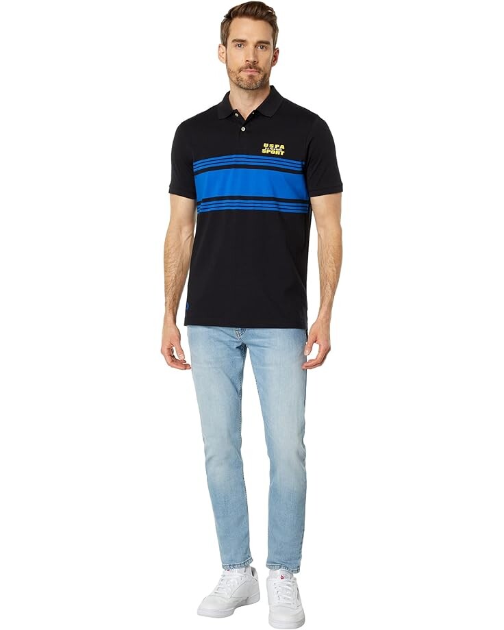 Поло U.S. POLO ASSN. Engineered Stripe Short Sleeve Knit Polo, черный