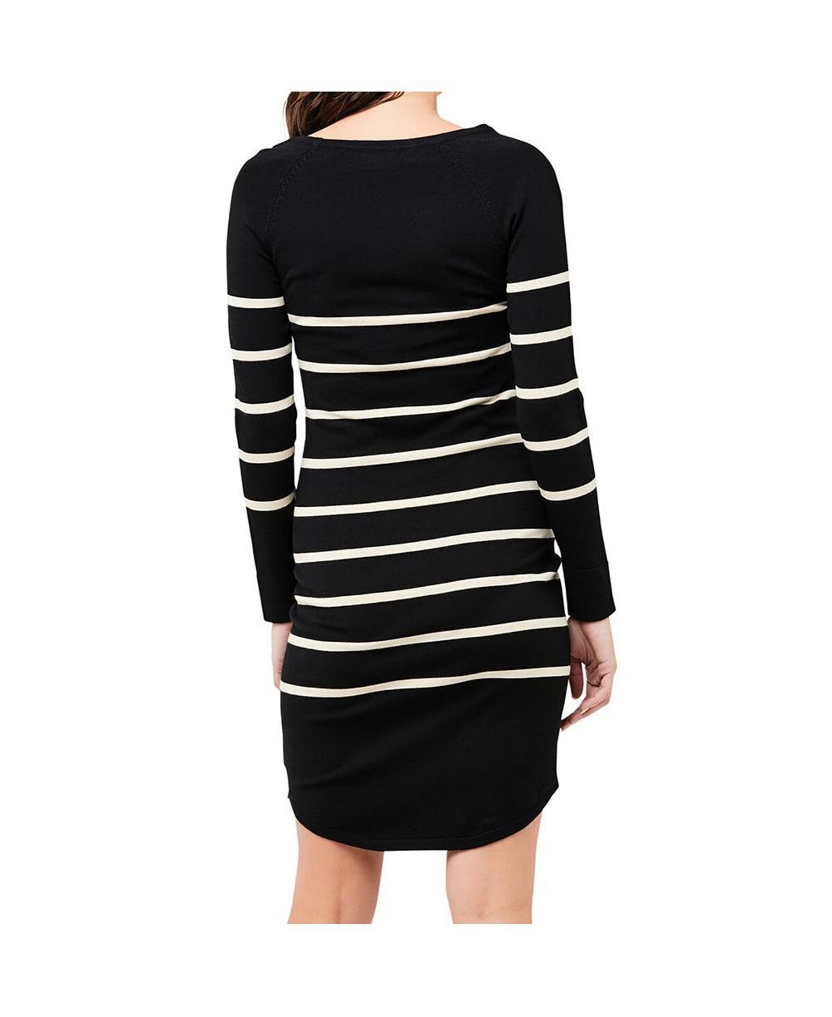 Шикарное трикотажное платье незаменимо для беременных в холодную погоду, облегчая повседневную укладку. Платье-туника Valerie с изогнутым краем и контрастными полосками поможет вам на всех этапах беременности.