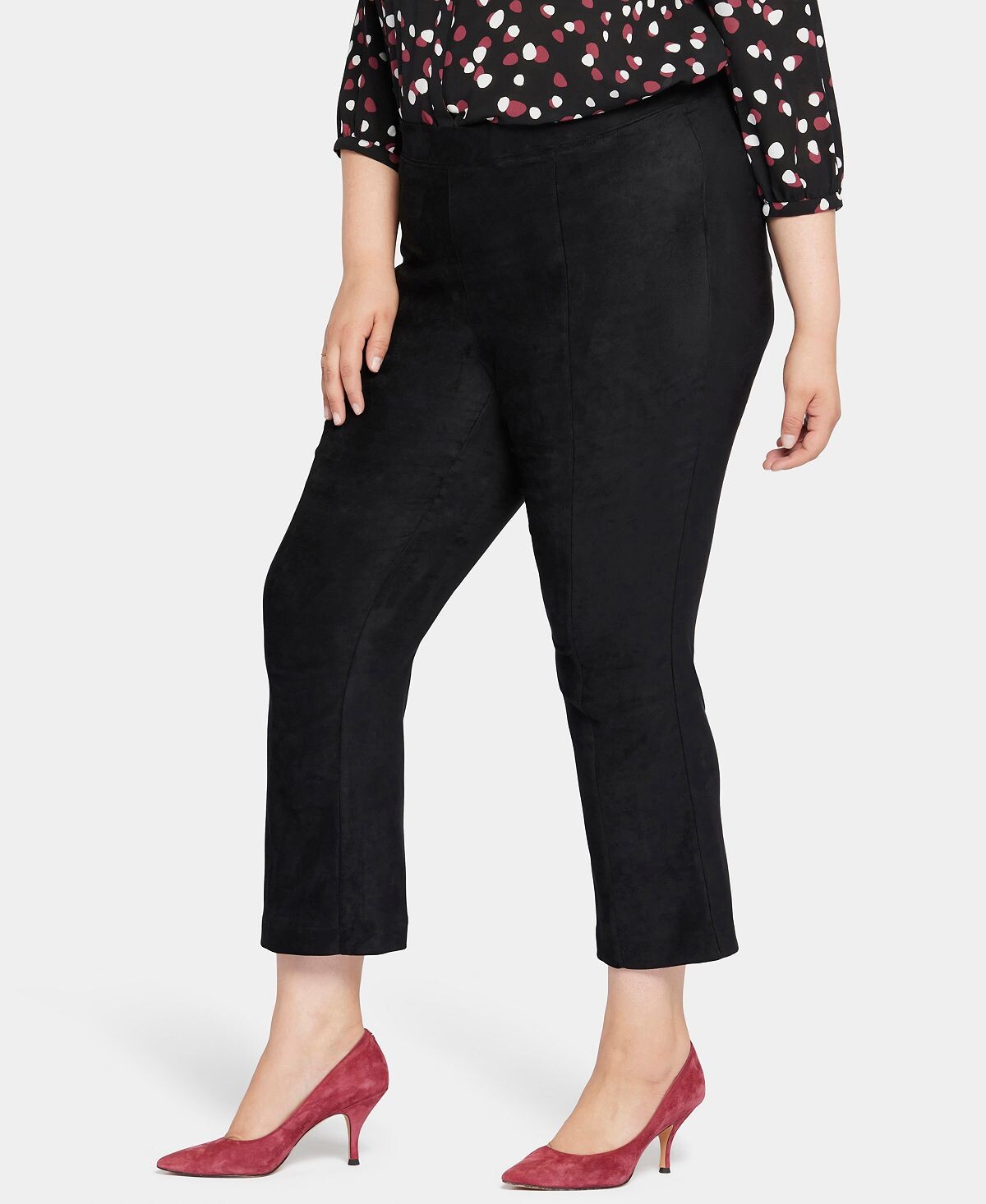 Узкие брюки NYDJ больших размеров из искусственной замши очень красиво сидят на фигуре, а искусно расположенные швы придают этому стилю эффект удлинения. Они достигают идеальной длины по щиколотку с едва уловимым расклешенным силуэтом. Утягивающий пояс обеспечивает максимальный комфорт.