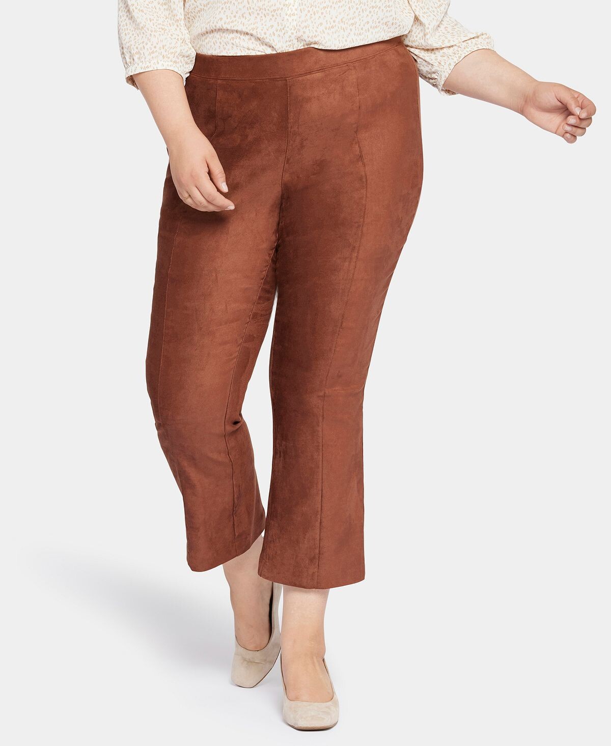 Узкие брюки NYDJ больших размеров из искусственной замши очень красиво сидят на фигуре, а искусно расположенные швы придают этому стилю эффект удлинения. Они достигают идеальной длины по щиколотку с едва уловимым расклешенным силуэтом. Утягивающий пояс обеспечивает максимальный комфорт.