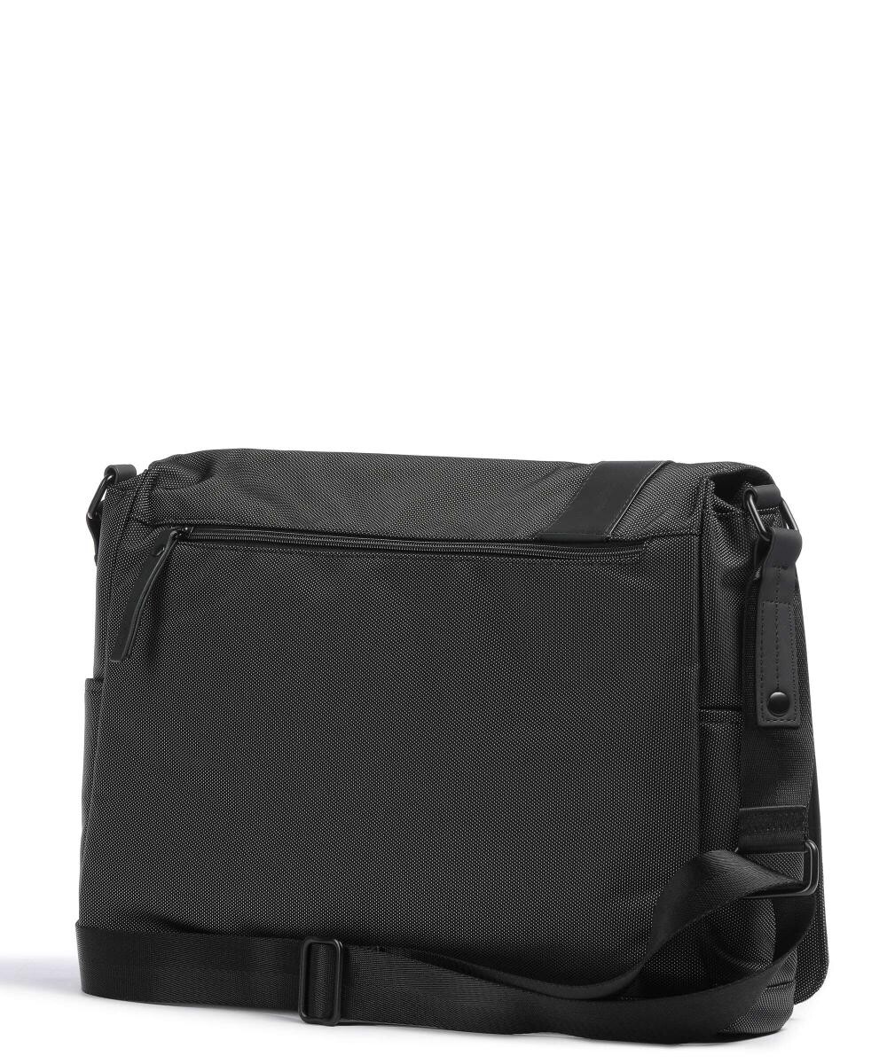 Два кармана спереди. Два кармана по бокам. Отделение на молнии сзади. Закрывается на липучку. Регулируемый плечевой ремень (длина ок. 110-170 см). Фурнитура из металла антрацитового цвета. Однотонная внутренняя подкладка из полиэстера. Просторное основное отделение для документов формата а4 и дополнительное отделение. Держатель ручки. Отделение на молнии. Мягкое отделение для ноутбука. Материал: нейлон (структурированный, светоотражающий). Отделение для ноутбука: подходит для ноутбуков с диагональю до 14 дюймов. Размеры: примерно 40 х 30 х 7 см (ширина х высота х глубина). Вес: 1,1 кг.