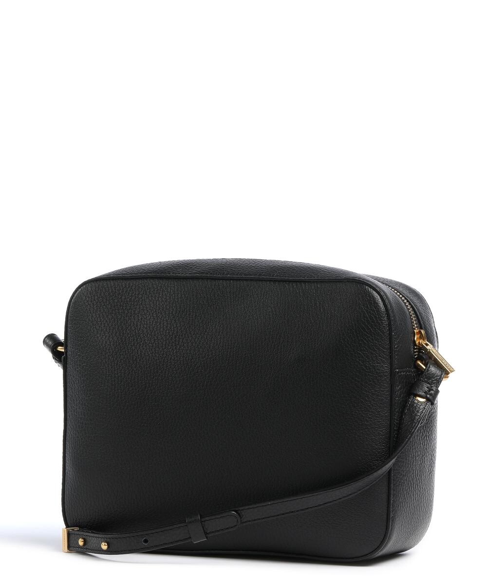 Карман на кнопке спереди. Закрывается на молнию. Съемный регулируемый ремень через плечо (длина примерно 100-110 см). Металлическая фурнитура золотого цвета. Обычная хлопковая подкладка. Основной предмет. Отделение на молнии. Материал: зернистая кожа. Размеры: примерно 26 х 20 х 9 см (ширина х высота х глубина). Вес: 0,7 кг.