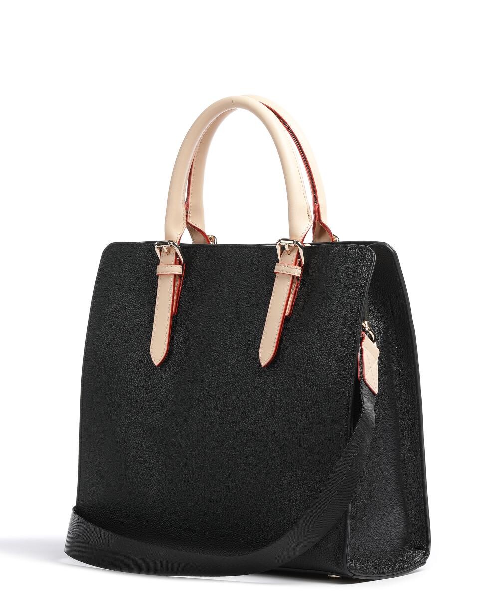 Один карман спереди. Металлические ножки. Закрывается на молнию. Две кожаные ручки для переноски (высота ручки 11 см). Съемный регулируемый ремень через плечо (длина примерно 70-140 см). Металлическая фурнитура из полированного золота. Подкладка с логотипом из полиэстера. Основной предмет. Отделение на молнии. Два кармана. Материал: искусственная кожа. Размеры: примерно 30 х 28 х 11,5 см (ширина х высота х глубина). Вес: 0,9 кг.