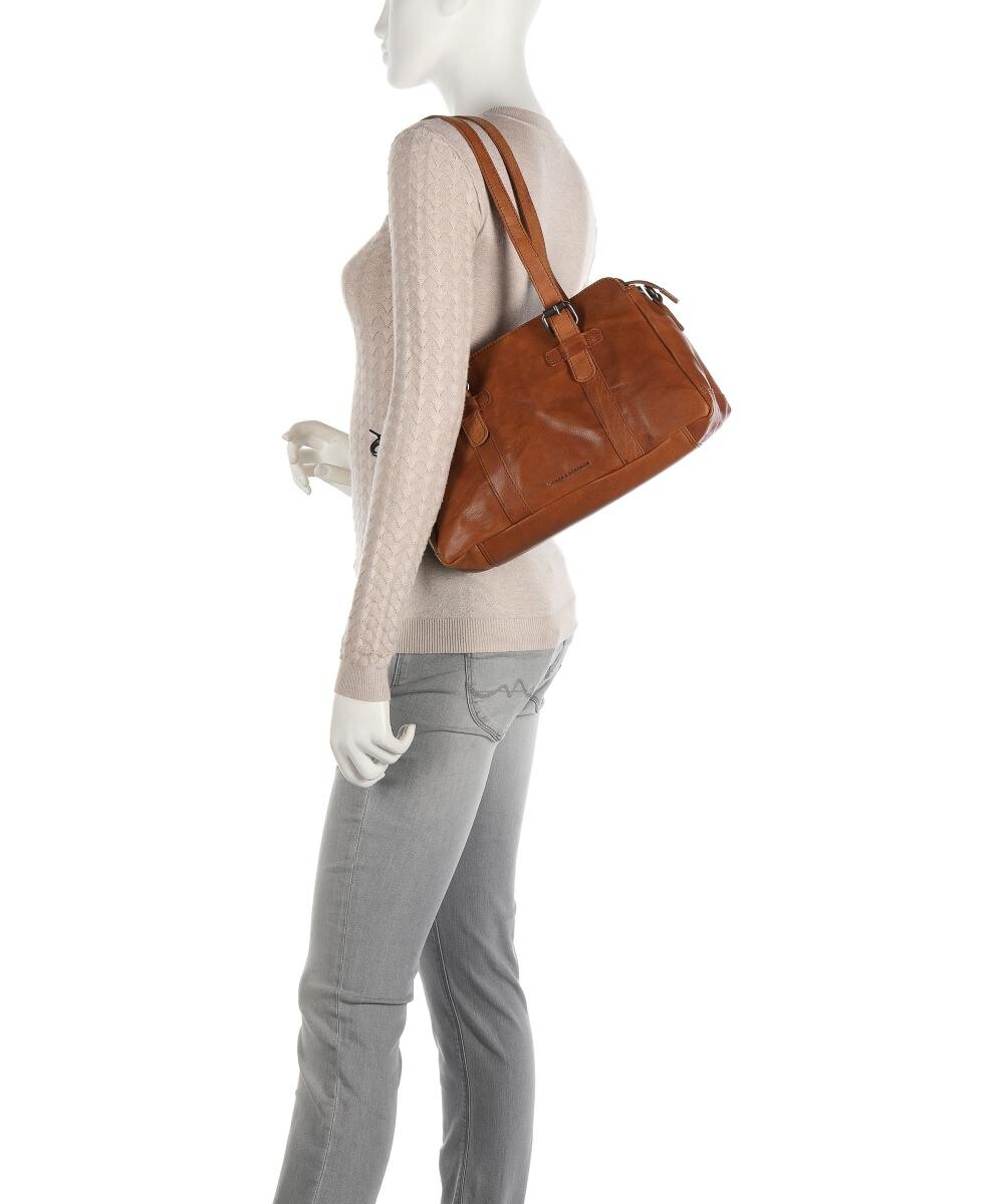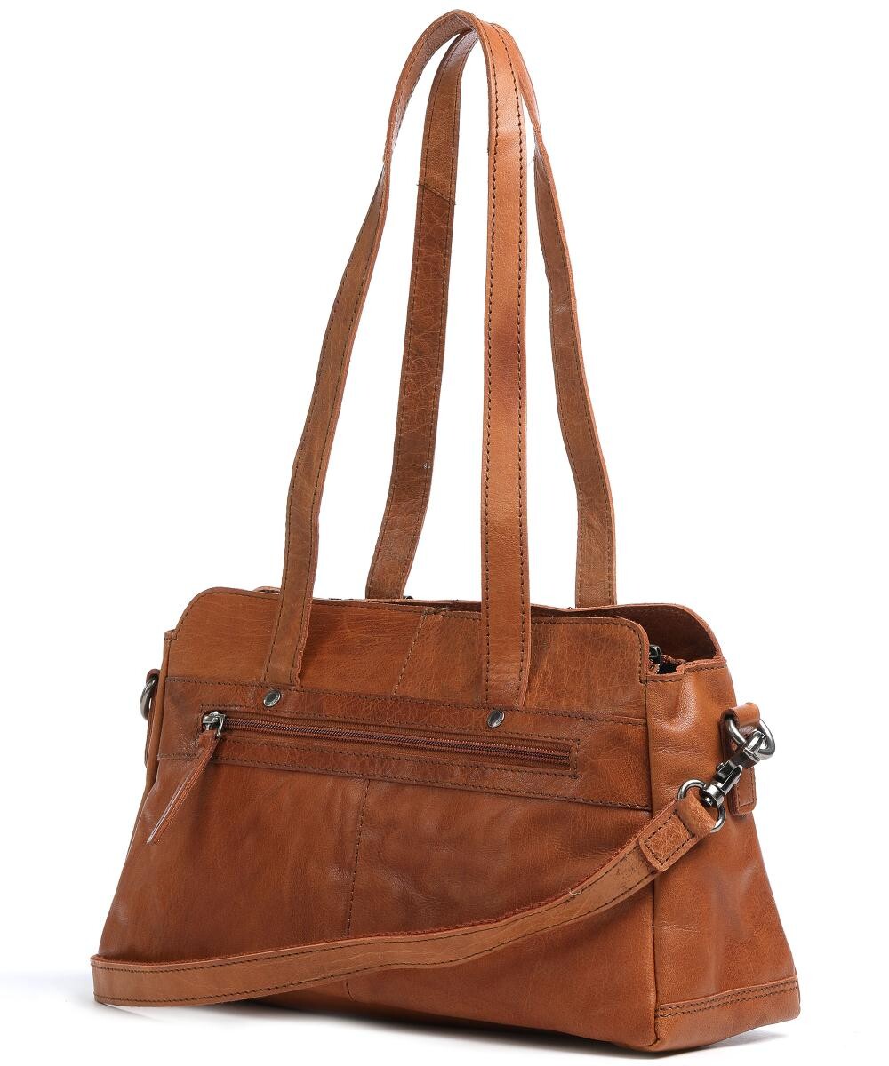 Отделение на молнии сзади. Закрывается на молнию. Две ручки для переноски (высота ручки 27 см). Съемный регулируемый ремень через плечо (длина примерно 70-130 см). Фурнитура в винтажном стиле антрацитового цвета. Внутренняя подкладка из полиэстера с рисунком pepita. Основной предмет. Перегородка с отделением на молнии и держателем для ручек. Отделение на молнии. Два кармана. Материал: кожа буйвола (вощеная). Размеры: примерно 34 х 20 х 11 см (ширина х высота х глубина). Вес: 0,6 кг.