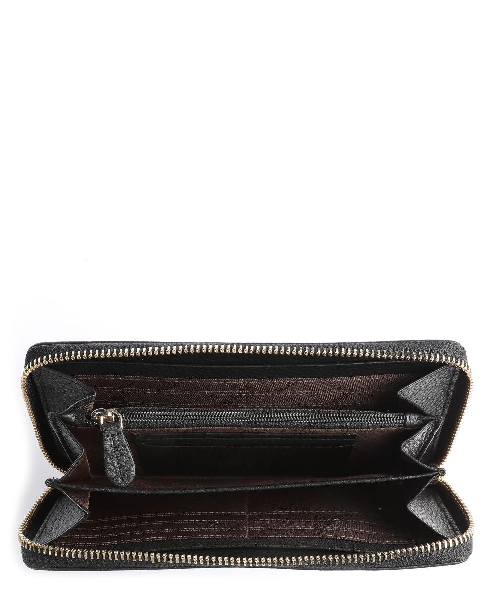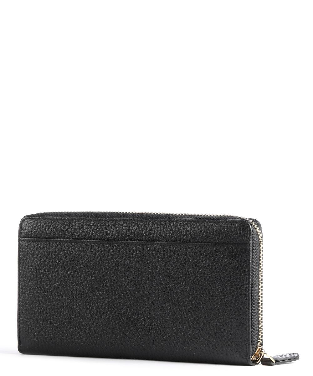 Карман на спине. Закрывается на молнию. Металлическая фурнитура из полированного золота. Подкладка с логотипом из полиэстера. Перегородка/перегородка, отсек с защитой rfid-сканирования для чиповых карт. Отделения для купюр и чеков, отделение для монет на молнии. Два кармана. 19 слотов для кредитных карт. Материал: зернистая яловая кожа. Размеры: примерно 19 х 10,5 х 2,5 см (ширина х высота х глубина). Вес: 0,2 кг.