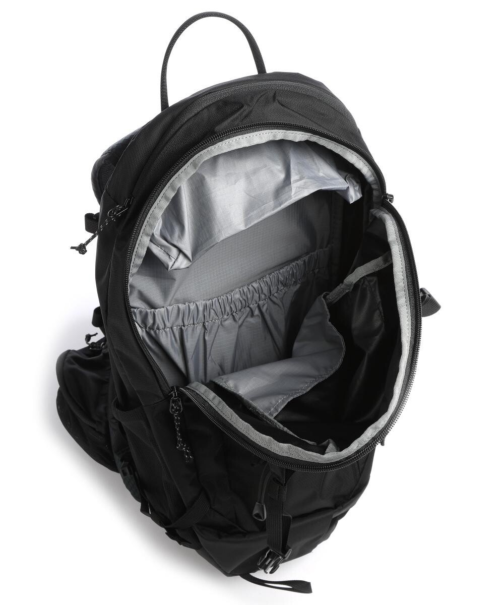 Сверху отделение на молнии. Карман на молнии спереди. Эластичные сетчатые отделения по бокам. Подготовка системы гидратации. Система переноски: контактная спинка, мягкая, вентилируемая. Лямки рюкзака: мягкие, вентилируемые. Закрывается на двусторонние молнии. Ручка для переноски. Поясной ремень для стабилизации, с широкими плавниками, с отделением на молнии. Нагрудный ремень для стабилизации, компрессионные ремни. Фурнитура из металла антрацитового цвета. Дождевик, сигнальный свисток. Основной предмет. Два кармана. Материал: полиамид. Размеры: примерно 24 х 53 х 22 см (ширина х высота х глубина). Вес: 0,7 кг. Объем: 20 л.