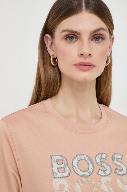 Хлопковая футболка Boss, бежевый