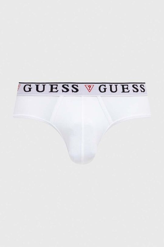 Трусы из коллекции Guess. Модель изготовлена ​​из гладкой, эластичной ткани. В комплекте три пары. Чрезвычайно удобный материал с высоким содержанием хлопка.