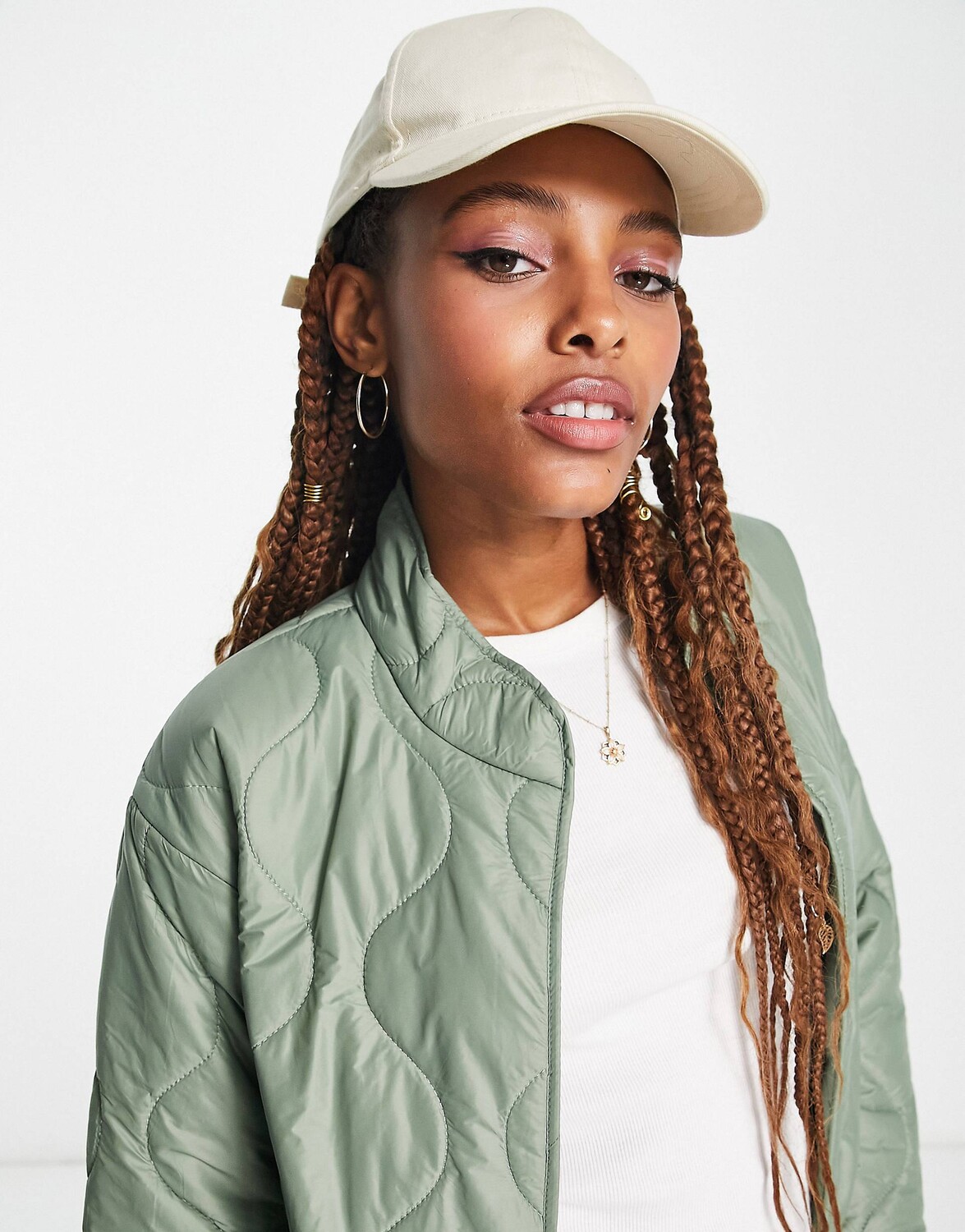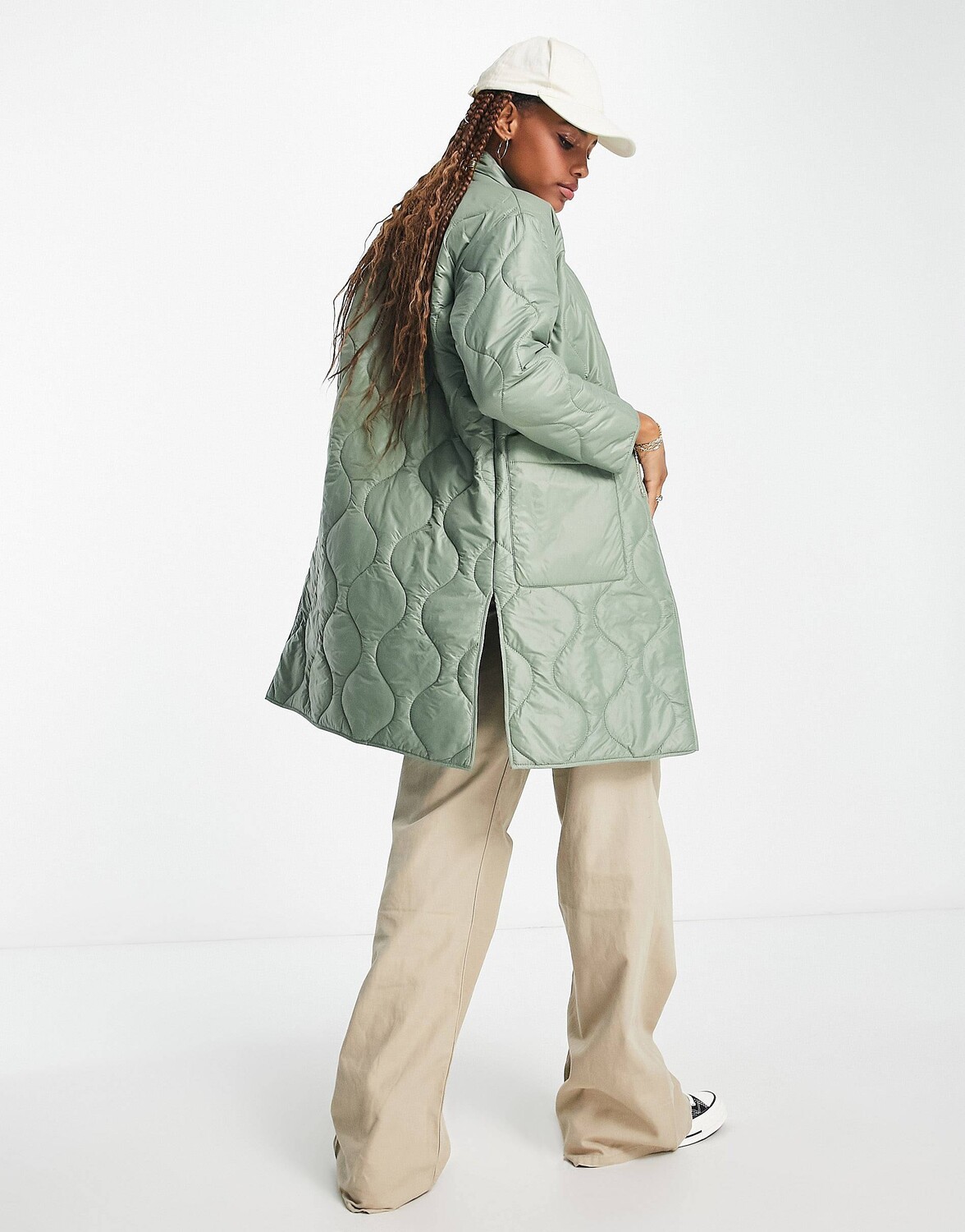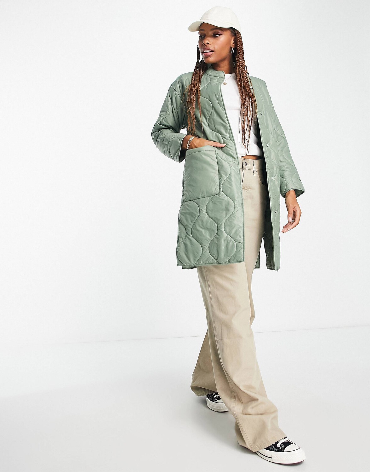 Стеганое пальто цвета хаки с луковым принтом Miss Selfridge