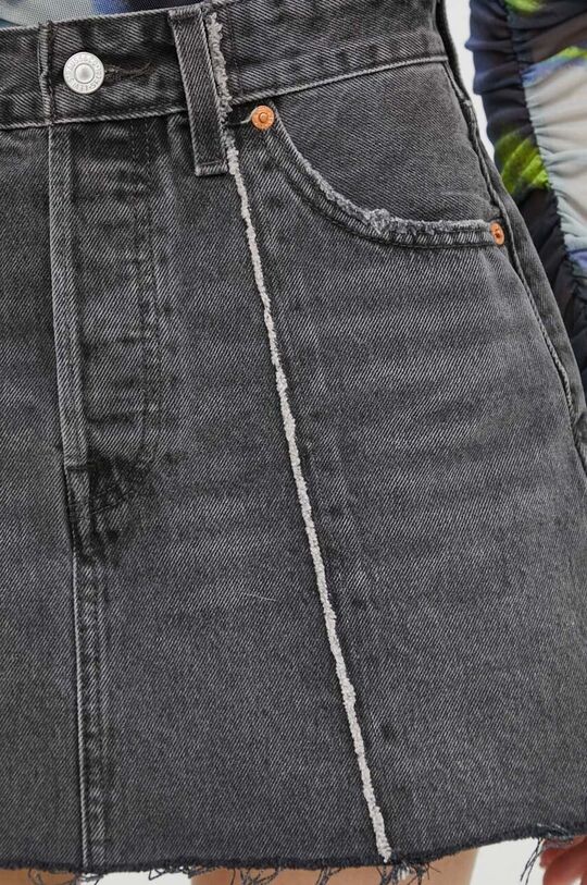 Юбка из коллекции Levi's из джинсовой ткани. Модель изготовлена ​​из жесткого, держащего форму материала.