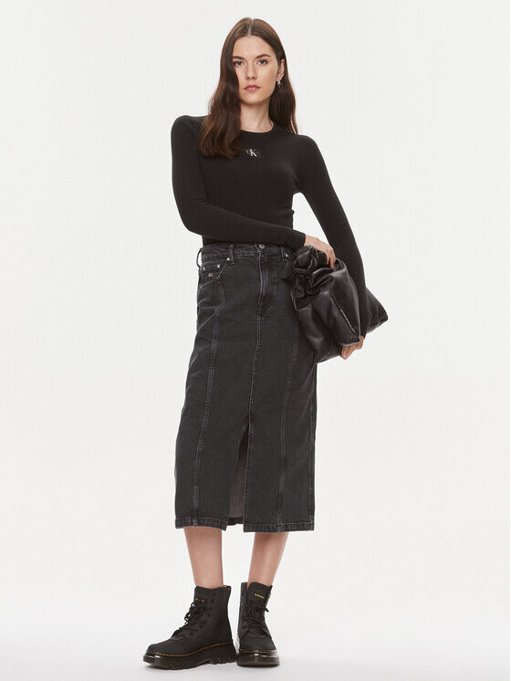 Узор: Гладкий. Застежка: на молнии. Примерка: стандартная посадка. Длина: миди. Состав: 98 % переработанный хлопок, 2 % эластан.
