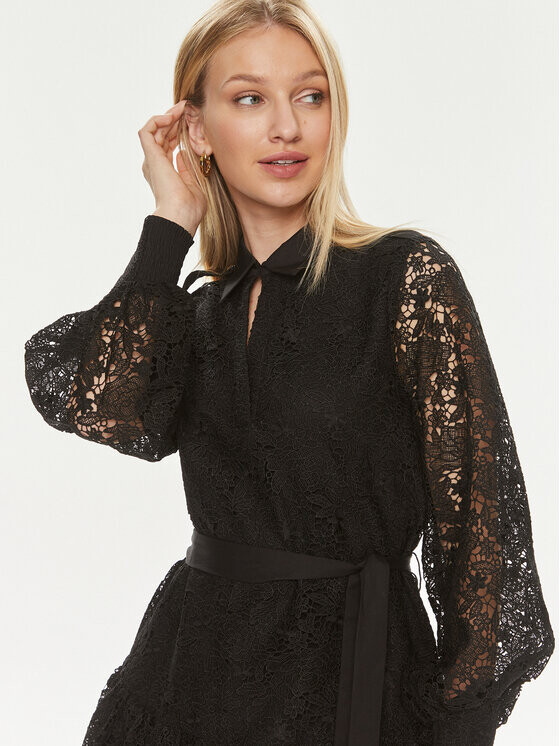Узор: Кружево Вырез: С застежкой. Рукав: длинный рукав. В комплекте: ремень из ткани. Примерка: стандартная посадка. Длина: Мини. Состав: 100% Полиэстер.