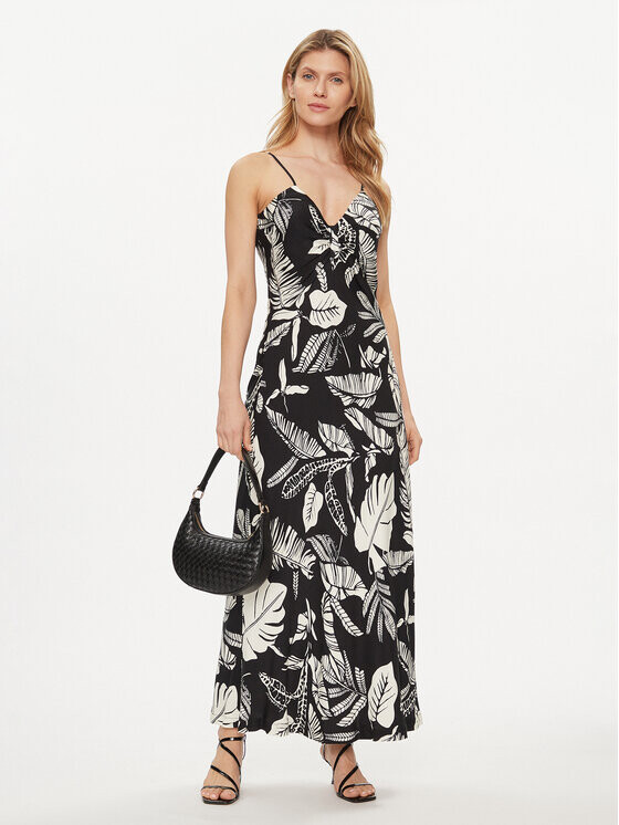 Узор: Цветочный узор Закрытие: надевается. Вырез: V-образный. Рукава: С бретелями. Примерка: стандартная посадка. Длина: Макси. Состав: 100% вискоза.