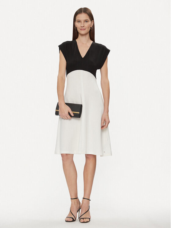 Узор: Гладкий. Застежка: на молнии. Вырез: V-образный. Рукав: короткий рукав. Сделано в: Португалия. Примерка: Slim Fit. Длина: миди. Состав: 47 % лиоцелл, 41 % хлопок, 12 % эластан.