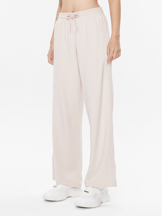 Брюки выполнены в классическом бежевом цвете, что делает их невероятно универсальными и легко сочетаемыми с различными элементами гардероба. Гладкий узор придает им минималистичный и современный вид, позволяя использовать их как для активного отдыха, так и для создания расслабленных городских образов. Отсутствие лишних деталей подчеркивает лаконичность и изысканность дизайна.