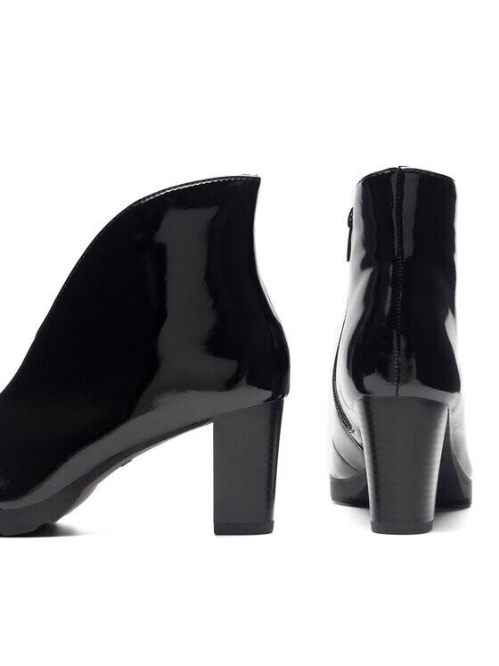Тип закрытия: Молния Носок обуви: круглый. Абзац: заблокировать абзац. Верхняя окружность голенища (самый маленький размер): 27 см. Окружность лодыжки (самый маленький размер): 26 см. Общая высота туфельки: 19 см. Высота каблука: 7 см. Вес обуви (самый маленький размер): 327 г. Материал каблука: высококачественный пластик. Кормление: Не кормят. Вставка: пластик. Внутри: кожа, ткань. Голенище обуви: натуральная кожа - лак. Подкладка: Твердая. Подошва: высококачественный пластик. Содержит нетекстильные части животного происхождения: Да.