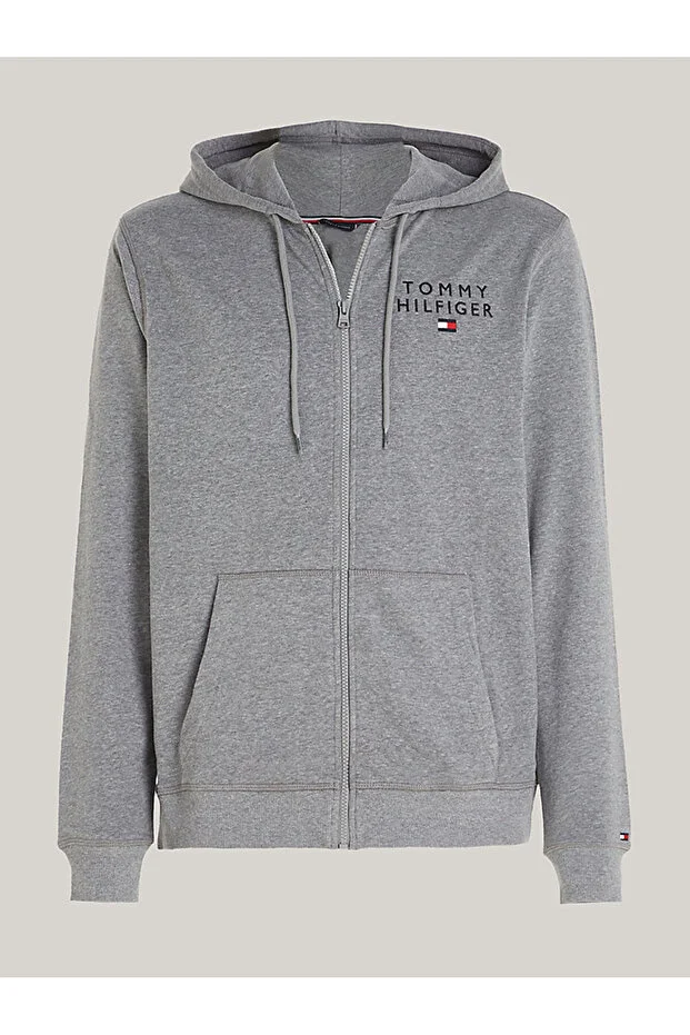 Классическая толстовка Tommy Hilfiger серого цвета с гладким узором и длинными рукавами, стандартной посадки. Застежка на молнии. Состав: 50% хлопок, 50% полиэстер.