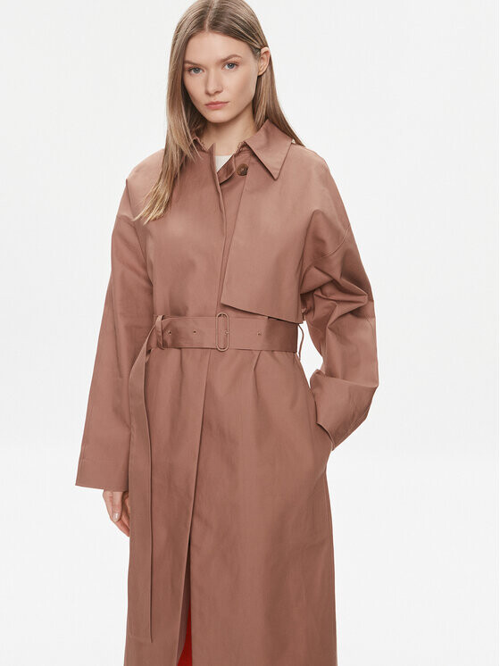 Пальто из линя свободного кроя Calvin Klein, бежевый