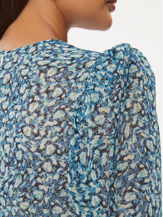 Узор: принт. Застежка: на молнии. Вырез: V-образный. Рукава: длинные рукава, рукава-буфы. Примерка: стандартная посадка. Длина: Мини. Состав: 98 % полиэстер, 2 % металлическое волокно. Подкладка: 57 % полиэстер, 43 % эластомультиэстер.