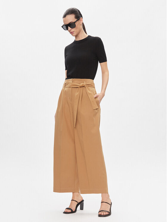 Узор: Гладкий. Застежка: на молнии. Фасон брюк: Широкий. Примерка: Slim Fit. Талия: Высокая талия. Длина: 7/8 длины. Состав: 56 % лиоцелл, 42 % хлопок, 3 % эластан.