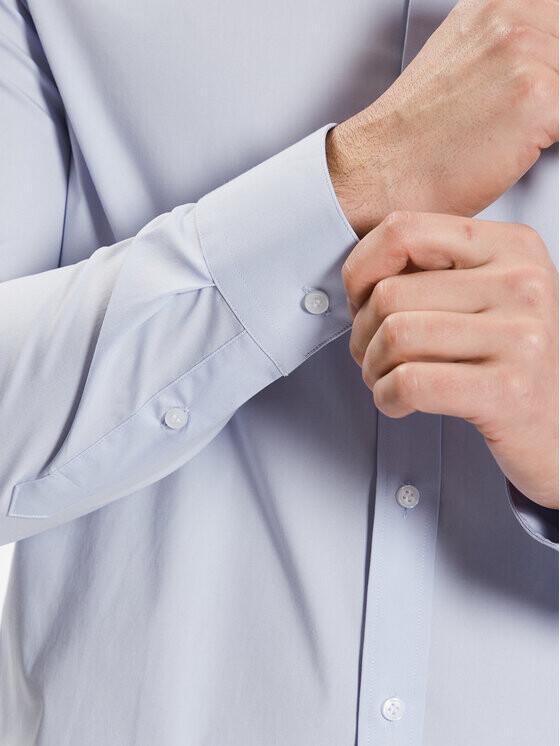 Узор: Гладкий. Застежка: С пуговицами. Тип воротника: полураспростертый. Рукав: длинный рукав. Примерка: Slim Fit. Состав: 96% хлопок, 4% эластан.