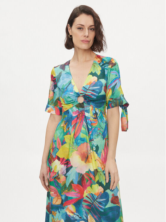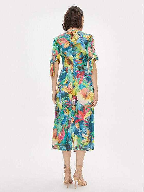 Узор: Цветочный узор Застежка: на молнии. Вырез: V-образный. Рукав: короткий рукав. Коллекция: Лю Джо Беттер. Примерка: стандартная посадка. Длина: миди. Состав: 100% Полиэстер. Подкладка: 100% полиэстер.