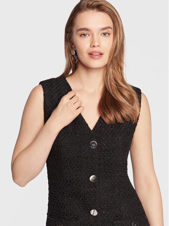Рисунок: разнообразная фактура ткани. Закрытие: надевается. Вырез: V-образный. Рукав: Без рукавов. Примерка: стандартная посадка. Длина: Мини. Состав: 37 % хлопок, 22 % акрил, 22 % шерсть, 14 % полиэстер, 4 % другие текстильные волокна, 1 % полиамид. Подкладка: 56 % ацетат, 44 % полиэстер.