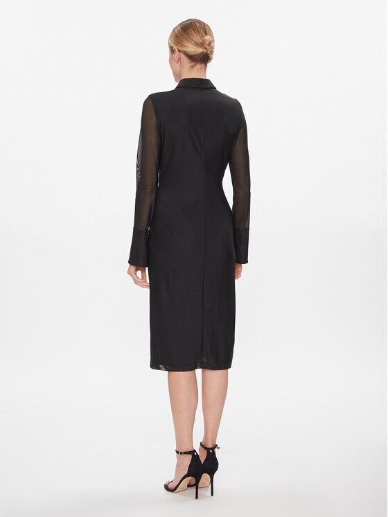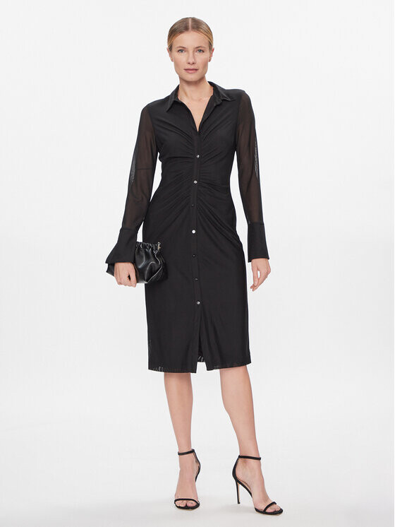 Узор: Гладкий. Застежка: С пуговицами. Вырез: С застежкой. Рукав: длинный рукав. Примерка: Slim Fit. Длина: миди. Состав: 85% полиэстер, 15% эластан.