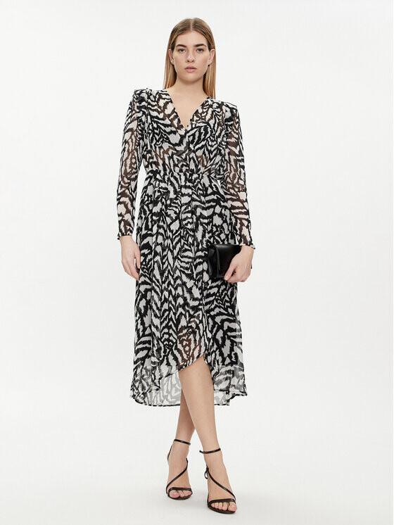 Узор: принт. Вырез: V-образный. Рукав: длинный рукав. Примерка: стандартная посадка. Длина: миди. Состав: 51 % переработанный полиэстер, 49 % полиэстер. Подкладка: 57 % полиэстер, 43 % эластомультиэстер.