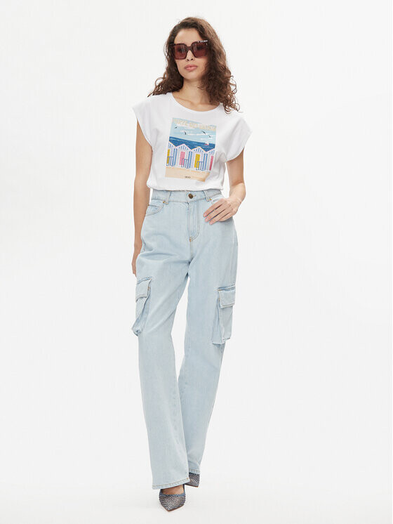 Узор: принт. Украшения: цирконы. Вырез: Круглый. Рукав: короткий рукав. Коллекция: Лю Джо Беттер. Примерка: стандартная посадка. Длина: стандартная длина. Состав: 95% хлопок, 5% эластан.