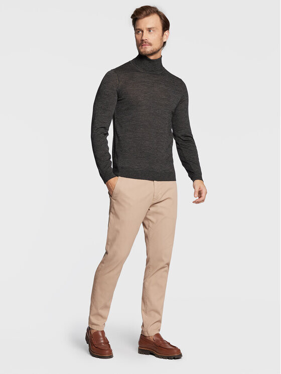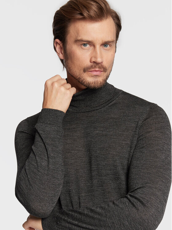 Свитер с высоким воротником приталенного кроя Boss, серый