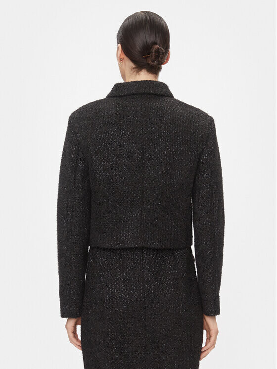Рисунок: разнообразная фактура ткани. Застежка: однобортная, на пуговицах. Рукав: длинный рукав. Сделано в Италии. Примерка: стандартная посадка. Длина: короткая. Состав: 90% полиэстер, 4% эластан, 6% другие текстильные волокна.