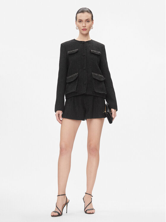 Рисунок: разнообразная фактура ткани. Украшения: цирконы. Застежка: пуговицы, однобортный. Рукав: длинный рукав. Сделано в Италии. Примерка: стандартная посадка. Длина: стандартная длина. Состав: 100 % полиэстер / 83 % полиэстер, 17 % акрил. Подкладка: 62% ацетат, 38% вискоза.