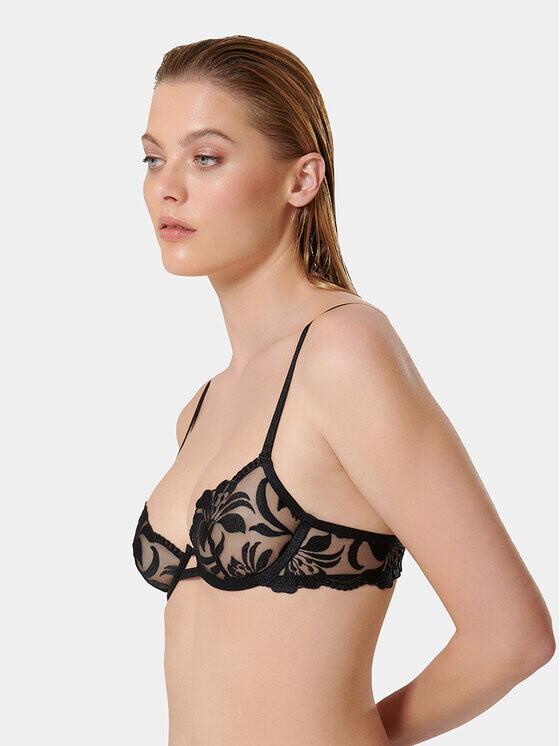 Узор: Кружево Чашка: Бюстгальтер на косточках, Нежесткая. Закрытие: сзади. Ремни: Не застегиваются, регулируются. Детали: цветочный узор. Состав: 69% полиэстер, 31% полиамид.