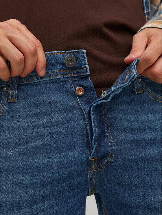 Узор: Гладкий. Застежка: С пуговицами. Стиль брюк: узкие. Коллекция: Jack&Jones Jeans Intelligence. Примерка: Slim Fit. Талия: Заниженная талия. Длина: Длинная. Состав: 50 % хлопок, 28 % полиэстер, 20 % переработанный хлопок, 2 % эластан.