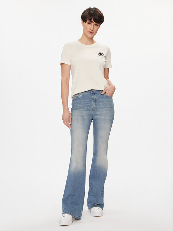 Узор: Гладкий. Застежка: на молнии. Стиль брюк: расклешенные. Сделано в Италии. Примерка: стандартная посадка. Талия: Высокая талия. Длина: Длинная. Состав: 98% хлопок, 2% эластан.