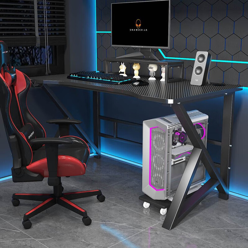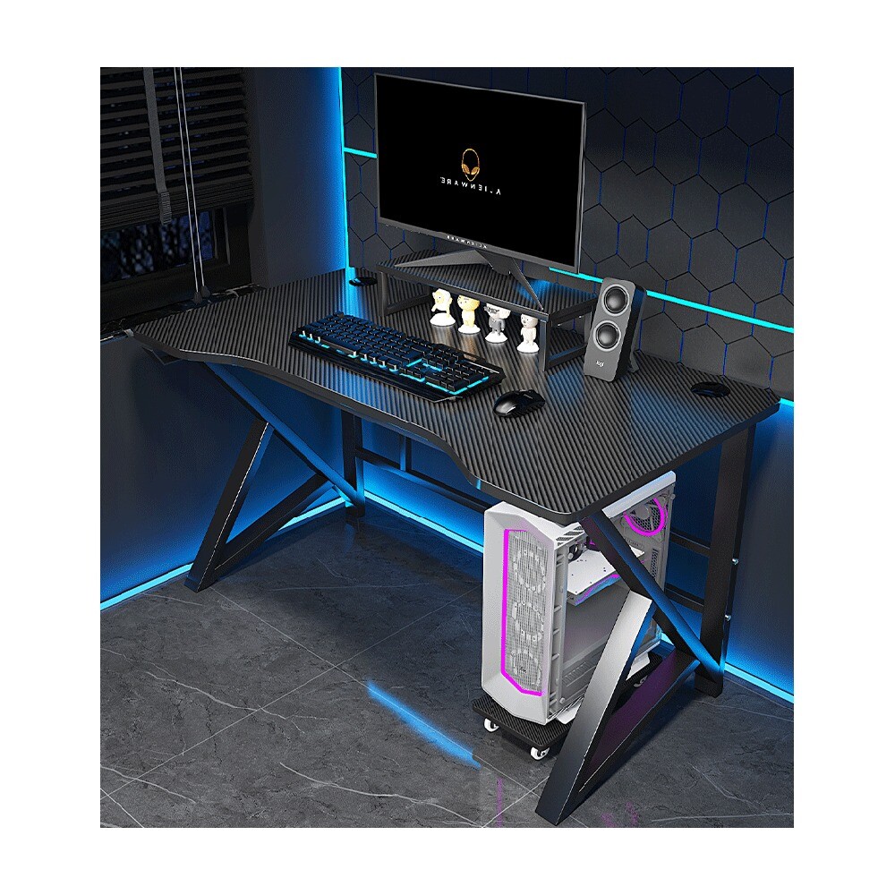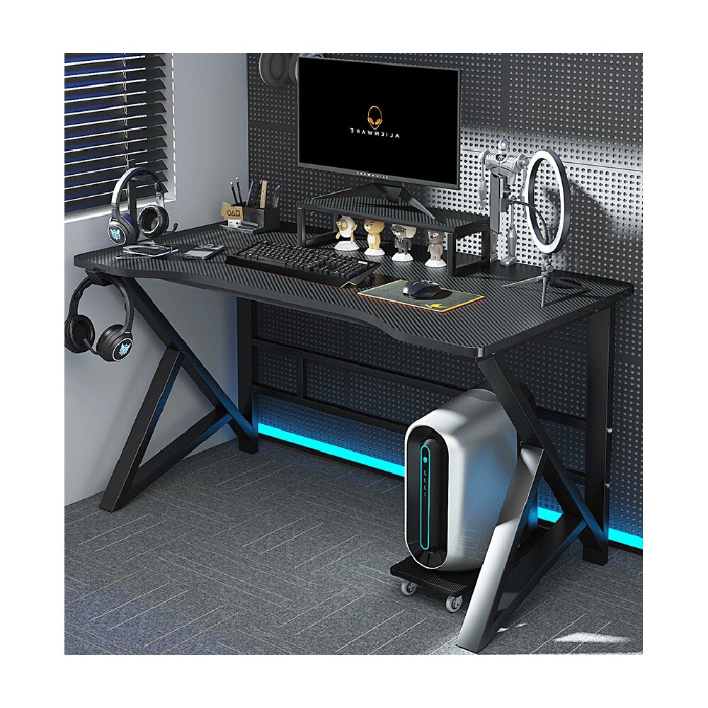 Стол выполнен в эргономичном дизайне с К-образными ножками, которые обеспечивают надежность конструкции. Двойная опора на задней стенке, делает модель устойчивой к шатаниям. Для корпуса компьютера имеется отдельностоящая подставка на колесиках, которую при необходимости можно переместить в удобное место. Также имеется отдельная подставка под монитор, которая немного приподнимет его.
