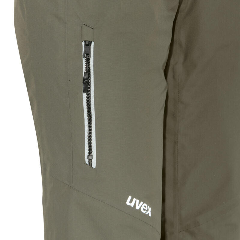 Два боковых кармана на потайных молниях, задний карман на кнопках и боковой карман Благодаря светоотражающей молнии и отсеку для молнии на бедре вы также можете легко хранить все свои вещи. В сочетании с погодной курткой uvex alldayactive 7631 вы защищены от ветра и дождя – и в то же время стильно одеты!