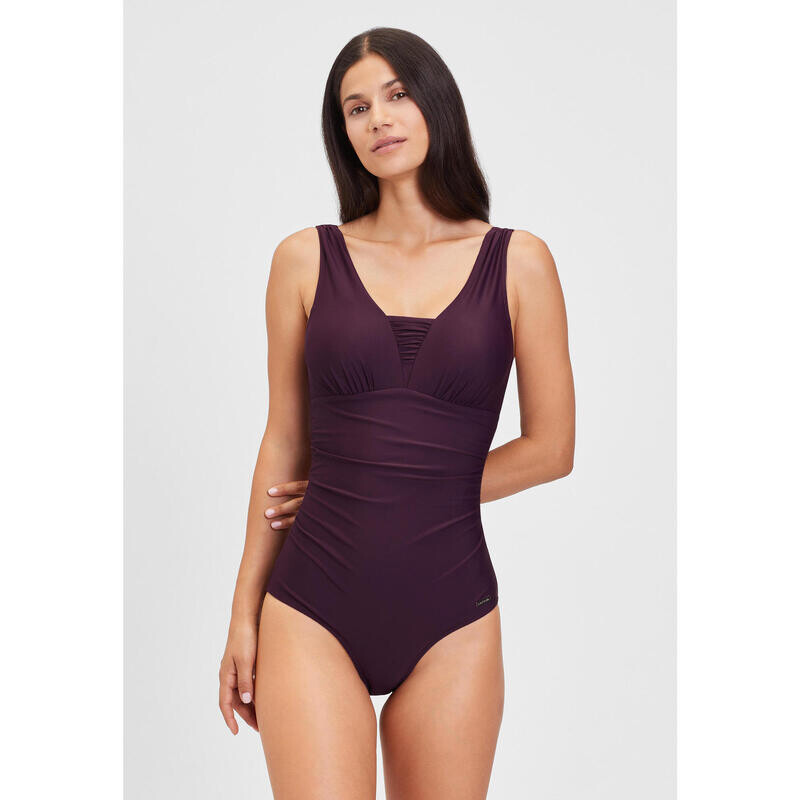 Женственный образ с рюшами и модным вырезом. С моделирующей вставкой и встроенными мягкими чашками для красивых пропорций и великолепного силуэта. Машинная стирка IC-47
