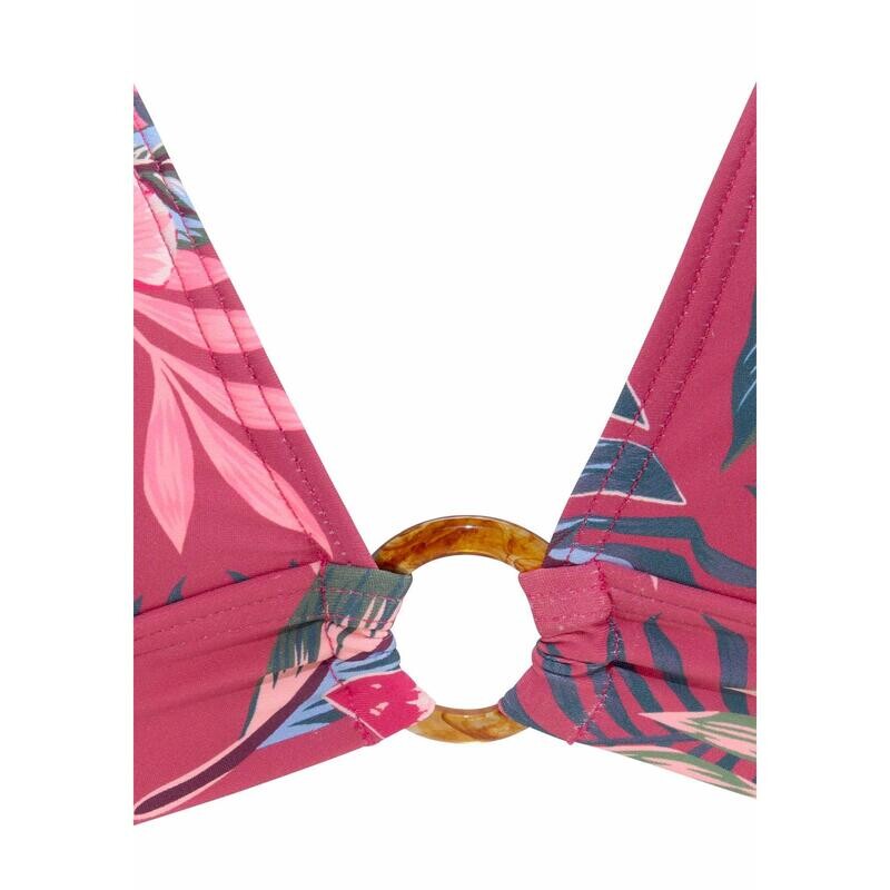 Модный треугольный топ от s.Oliver. С тропическим принтом. Удобство: завязывается на шее и застегивается сзади. Съемные мягкие чашки для красивого декольте. Привлекает внимание: маленькое декоративное кольцо спереди. Мягкая микрофибра. Ручная стирка СУКИ-10