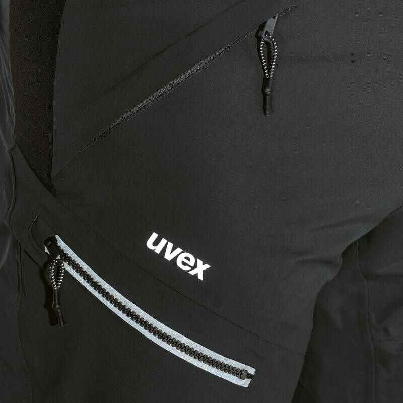 Два боковых кармана на потайных молниях, задний карман на кнопках и боковой карман Благодаря светоотражающей молнии и отсеку для молнии на бедре вы также можете легко хранить все свои вещи. В сочетании с погодной курткой uvex alldayactive 7631 вы защищены от ветра и дождя – и в то же время стильно одеты!