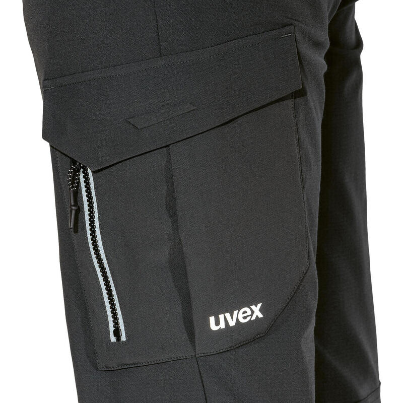В двух боковых карманах и грузовом кармане со светоотражающей застежкой-молнией вы можете носите с собой такие вещи, как смартфон, а задний задний карман с мелкошовной молнией станет безопасным местом для кошельков! И здесь светоотражающие элементы (шнуры) и детали (принты) обеспечивают повышенную видимость. Эти треккинговые брюки, особенно в сочетании с гибридной курткой uvex alldayactive 7633, станут идеальным нарядом для длительных пеших походов и для всех тех, кто любит проводить свободное время на природе!