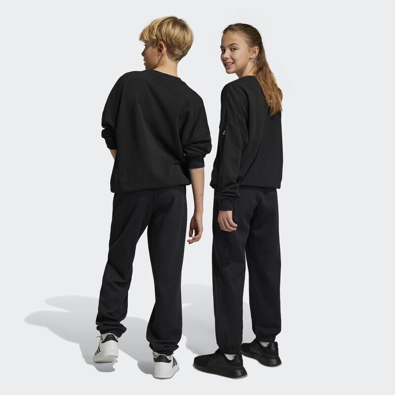 Удобные спортивные штаны всегда работают. Эти брюки для детей и подростков украшены скульптурным принтом логотипа Adidas спереди. Он изготовлен из смесового хлопка двойной вязки и имеет свободную посадку, поэтому вы можете расслабиться после тренировки. Эластичные манжеты заканчиваются чуть выше вашей любимой обуви. Это изделие на 70 % состоит из переработанных и возобновляемых материалов.