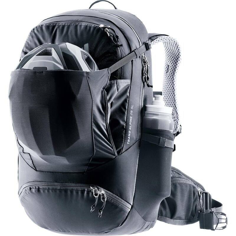 Trans Alpine 28 SL от deuter для женщин — это вместительный многодневный рюкзак, специально разработанный для сложных альпийских переходов на горном велосипеде. Хорошо продуманные отделения, такие как карман для специального инструмента и насоса, функциональный передний карман для безопасного хранения шлема и разделяемое основное отделение, обеспечивают идеальную организацию и легкий доступ. Эластичные боковые карманы и петли для крепления обеспечивают практичное хранение. Карманы на бедрах и боковое отделение на молнии идеально подходят для вашего смартфона или мелких предметов, которые всегда должны быть под рукой. Система спинки Airstripes обеспечивает хорошую вентиляцию и надежную и стабильную посадку даже на сложных маршрутах. Велосипедный рюкзак оснащен эргономичными лямками с мягкой подкладкой, регулируемым нагрудным ремнем со свистком и вентилируемыми набедренными плавниками. Система переноски версии SL специально адаптирована к женской анатомии. Trans Alpine 28 SL теперь изготовлен из экологически чистых и переработанных материалов.
