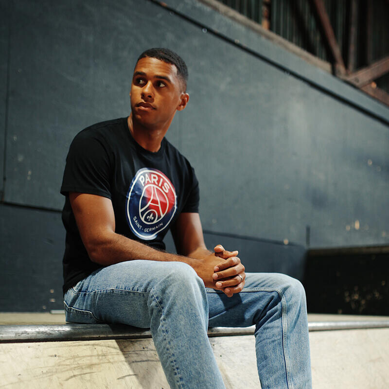 Стильно продемонстрируйте свою поддержку любимой команды с помощью мужской футболки с большим логотипом PSG. Эта черная футболка изготовлена из 100% хлопка и украшена культовым логотипом ПСЖ на груди. Эта футболка Paris Saint-Germain является официальным предметом фанатов и идеально подходит для каждого преданного болельщика.