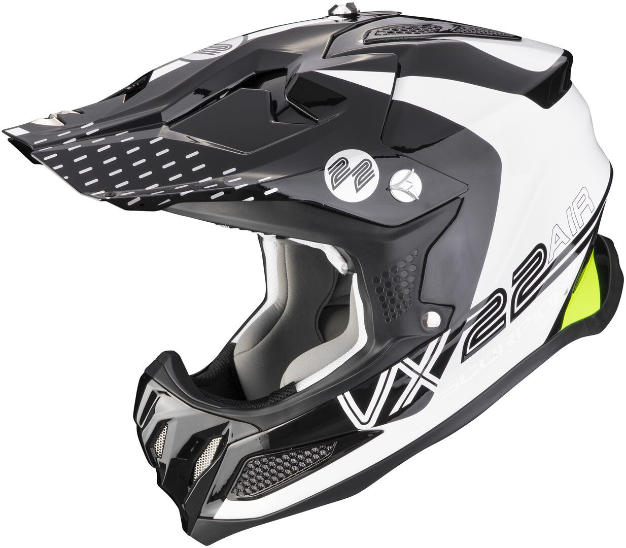 Преемник легендарного VX-21 Air, с впечатляющим послужным списком на любой местности, новый Scorpion VX-22 Air будет иметь непростую задачу заменить самую успешную модель своего внедорожного диапазона, сочетая лучшие технологии для еще большей эффективности. Разработанный в сотрудничестве с лучшими в мире гонщиками мотокросса и эндуро, VX-22 Air сочетает в себе изобретательность нового внедорожного шлема для еще большей производительности в полевых условиях. Сверхлегкая оболочка из волокна TCT с системой безопасности MIPS, система Airfit для регулировки накладок на щеки, съемная и моющаяся внутренняя подкладка KwickWick3, двойная титановая крышка шлема D, оптимизированная система вентиляции, совместимость с шейной скобой, сверхлегкий и стойкий щит шлема. VX-22 Air побеждает на всех уровнях