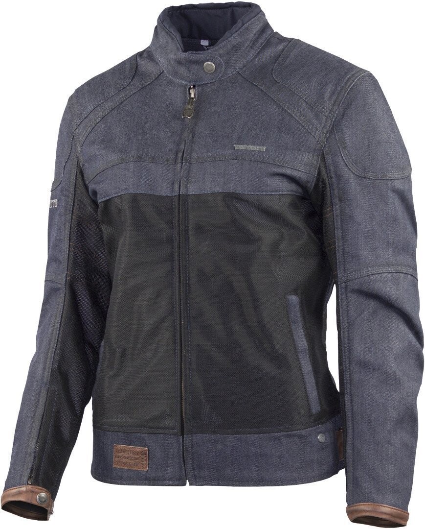Сочетание темно-синего денима, черной сетки и коричневой кожи придает куртке неповторимый вид. С техническими особенностями мотоцикл куртка не только удобно, но и предлагает безопасность во время езды.